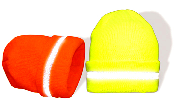 Our SAFETY GREEN HATS and SAFETY ORANGE HATS increase visibility, warmth and head protection! Our High Visibility Caps feature bright fluorescent High Visibility ANSI Lime or High Visibility ANSI Orange colors, in super warm, super soft, high quality acrylic fabric. Design features a 360º stripe of Reflective Yarn for added Visibility from a distance. Lightweight to carry and easy to slip on. Wear with or without a hard hat. Machine washable.